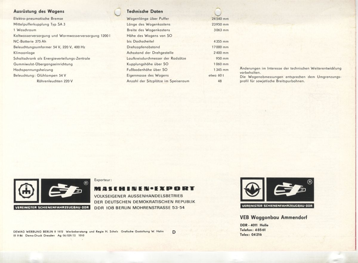 Еще один буклет 1972 года о вагонах-ресторанах модели WSW SK/k, завод "Аммендорф".