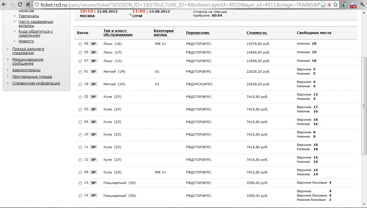 В 8:01, кому интересно, ушел весь низ в плацкартных 13 и 14 вагонах при 14 таковых местах в 15-м, в 8:04 нижние небоковые закончились. Но вот от чего протащился - в 12-м вагоне первыми ушли места 35 и 36 ::-D: