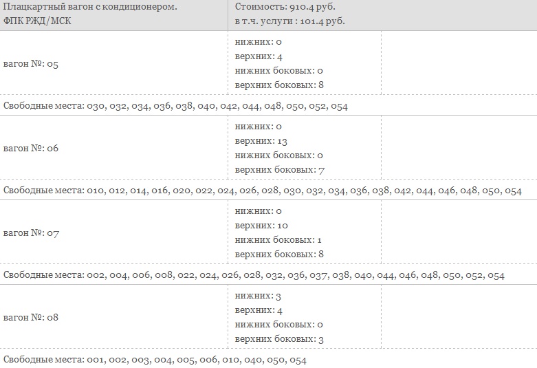 За неделю до отправления в продажу были открыты плацкартные вагоны №№ 5, 6 и 7.