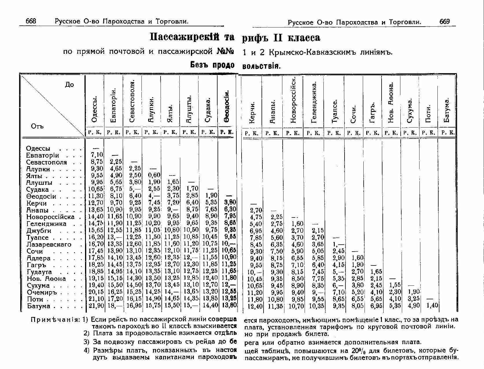 Вот сканы цен на билеты на пароходы РОПиТ.. (а это вам не какой-то задрипанный катер - пароходы были весьма приличные, в 1-ю мировую все реквизировали для нужд армии и переоборудовали в минные заградители).