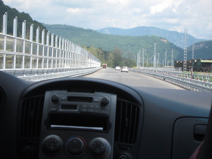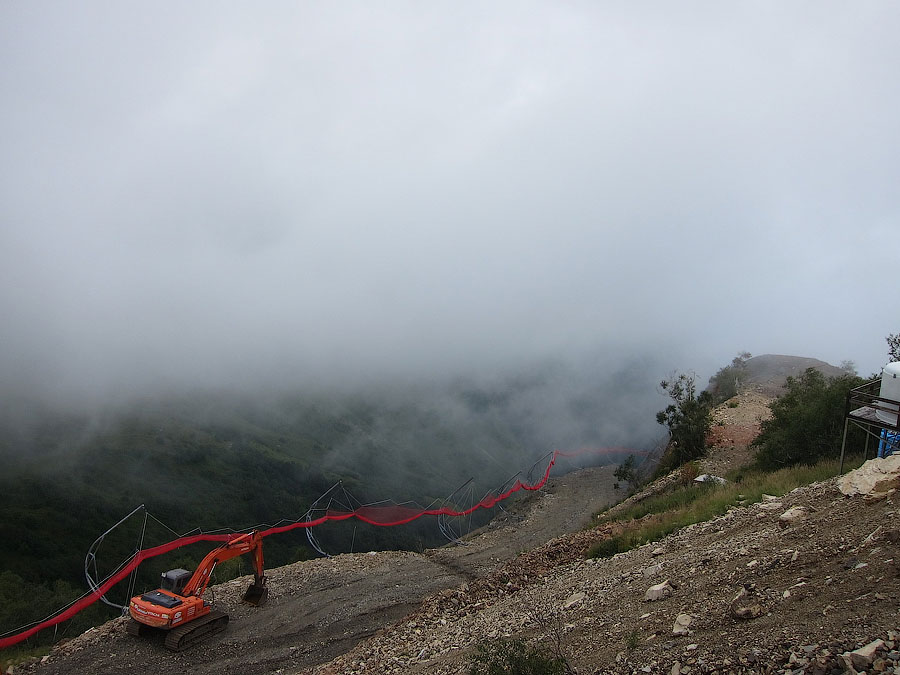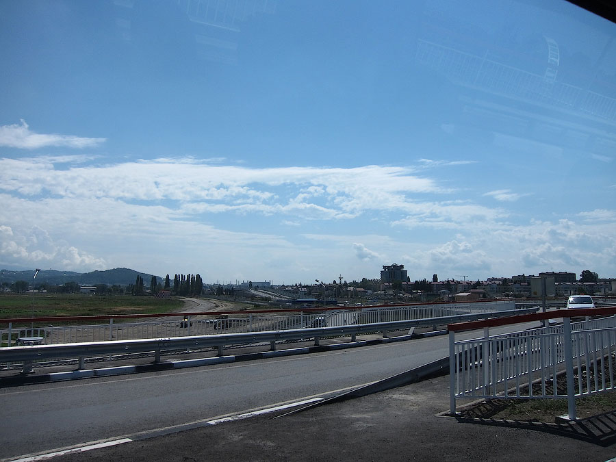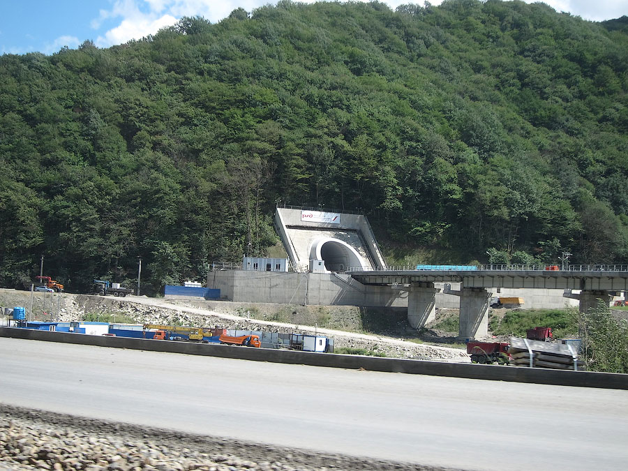 По непосредственной дороге на Красную поляну заметно активное строительство совмещённой автомобильно-железной дороги вдоль русла реки Мзымты. Во всяком случае эстакады и многочисленные балки мостов уже на месте. На многих отрезках установлены опоры КС, дожидается укладки решетка.