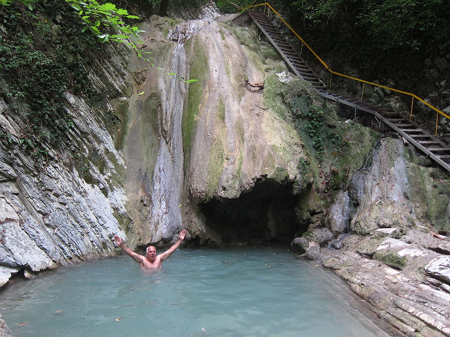 Далее вверх по тропинке и мосту поднимаемся к живописному трехкаскадному водопаду общей высотой около 15 метров.