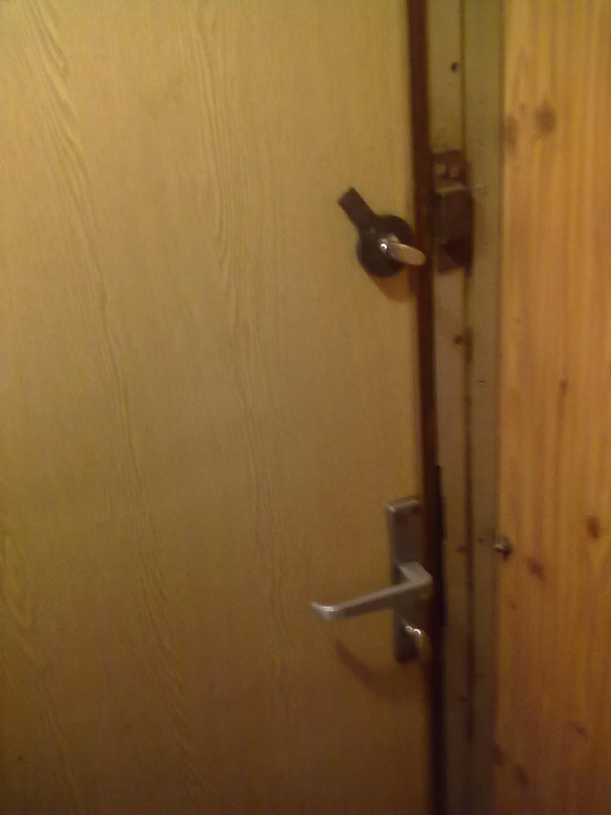 Дверь в туалет (изнутри). Аж с двумя замками. А в некоторых электричках ни одного нет...