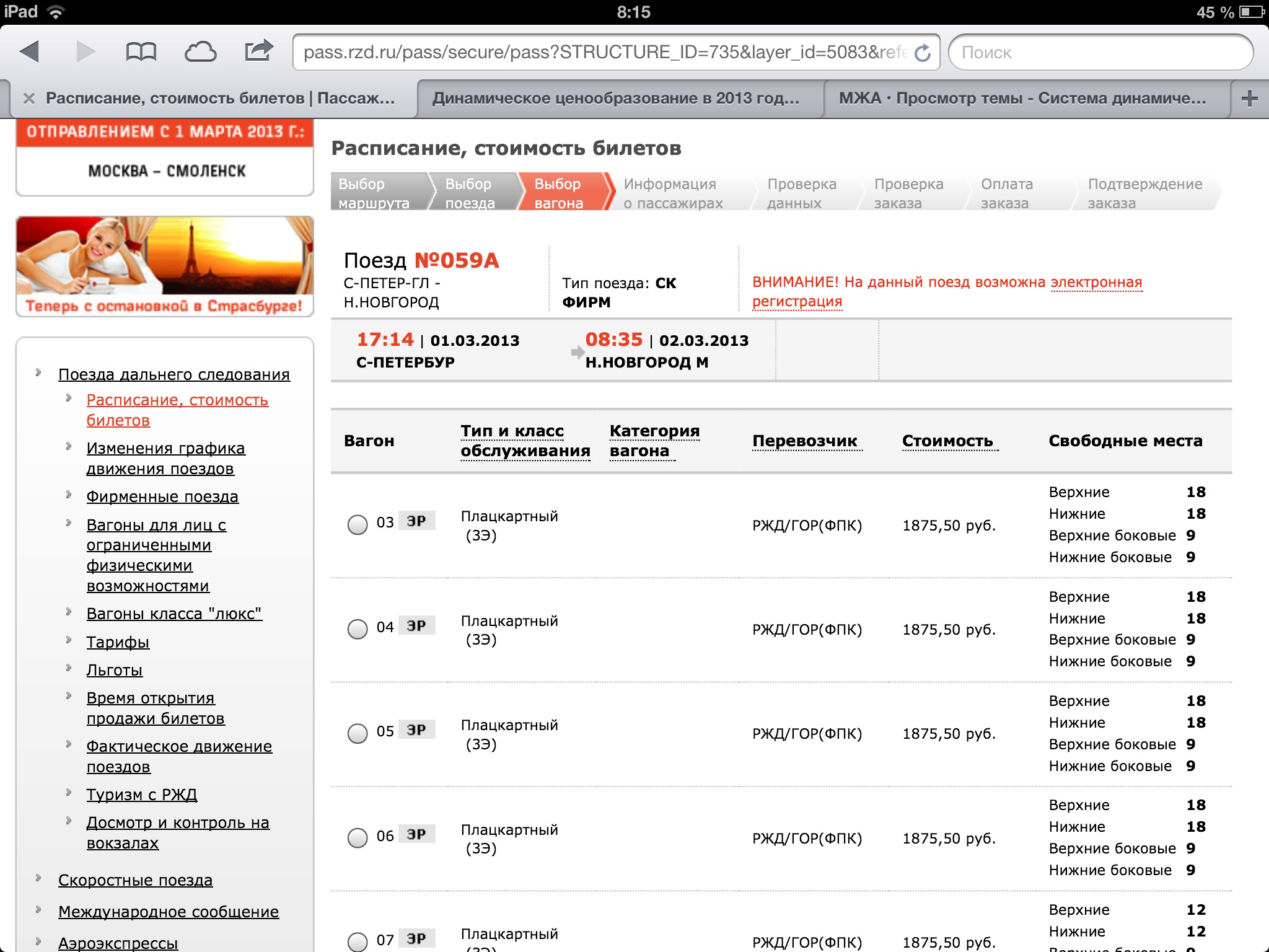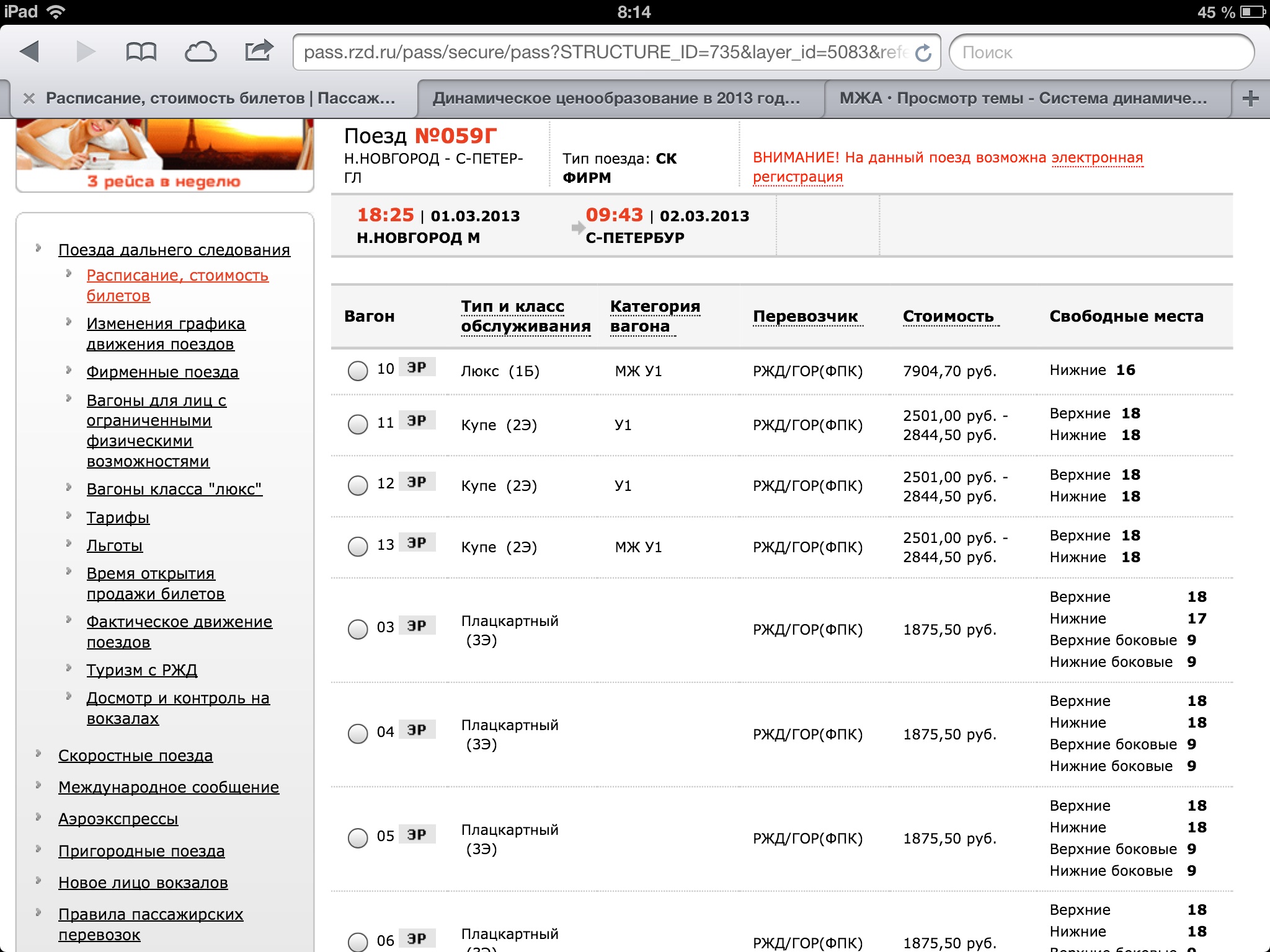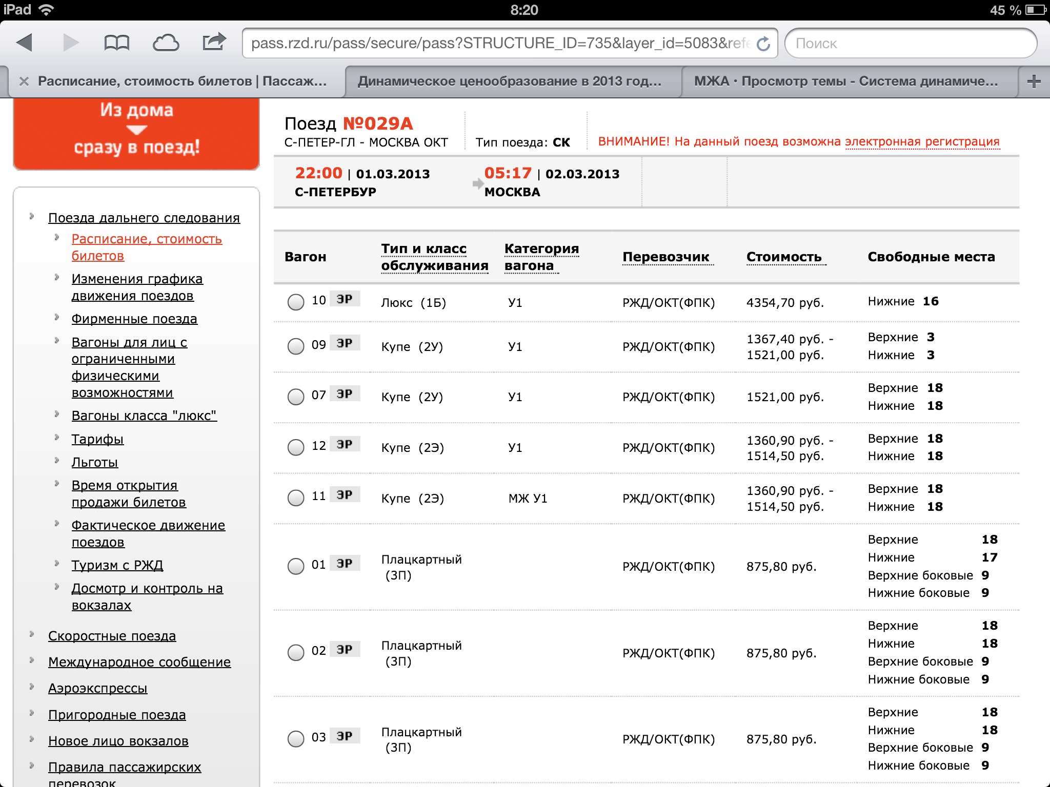 С 1 марта 2013 года начнет действовать система динамического ценообразования, разработанная ОАО "Федеральная пассажирская компания"