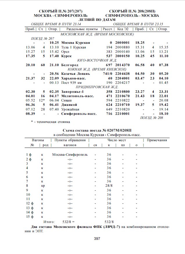 Видел очень много раз.Синие УЗ-шные вагоны,впечатление не очень хорошее.Ехал в 2008 году из Симферополя в плпцкартном вагоне (208 поезд).Деревянные старые окна, которые либо не открываются, либо не закрываются.По всей территориии Украины было очень жарко.Никаких кондиционеров.На утро кипятка в титане не было, так что обошелся без чая. А так график соблюдает, в Тулу приехал без позданий в 8.40. Моя оценка 3/10