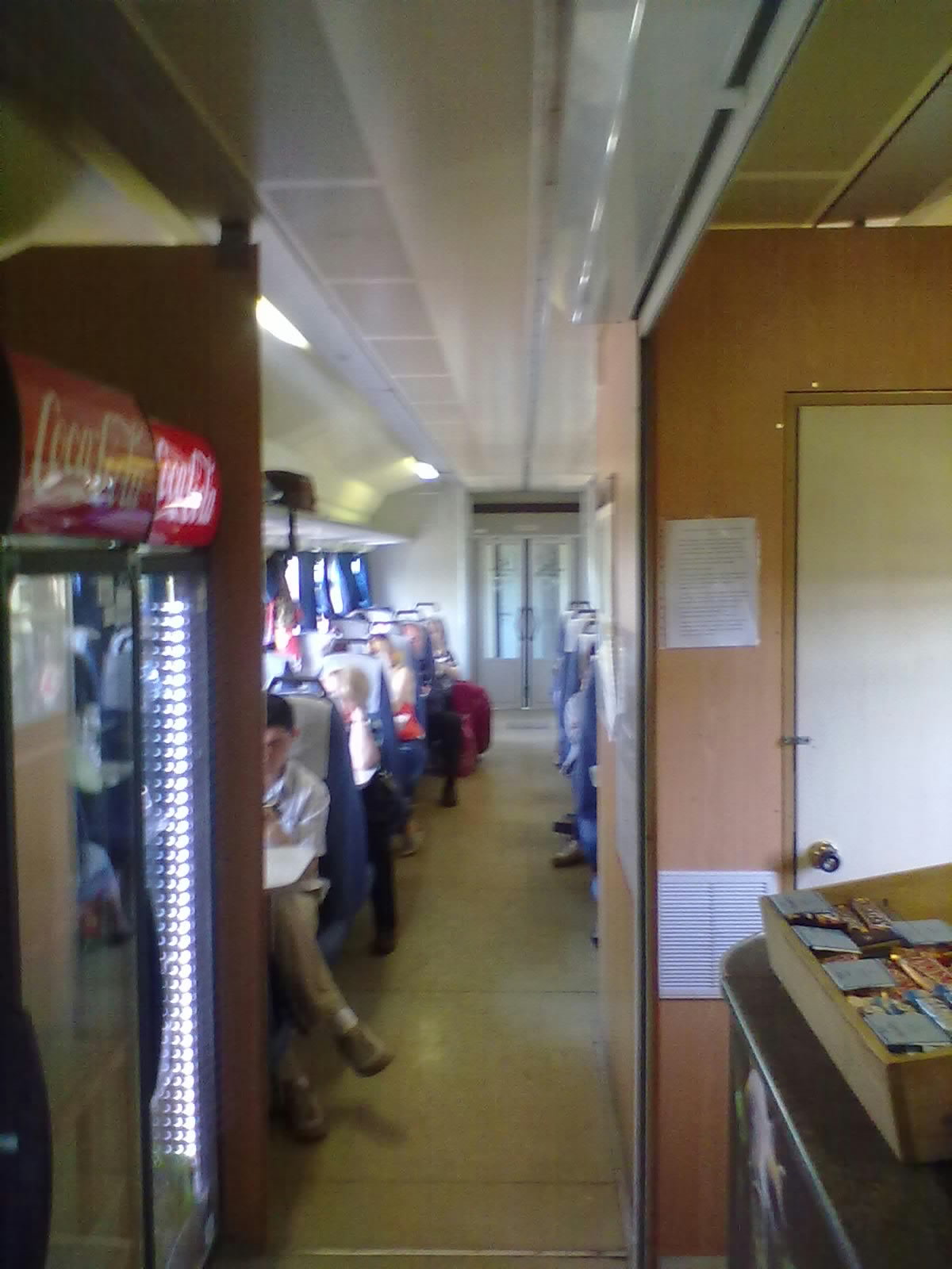 Салон вагона-бара, использовался не совсем по назначению, не как вагон-ресторан - там просто ехали пассажиры, как в обычном вагоне, но у них было преимущество - наличие столика.