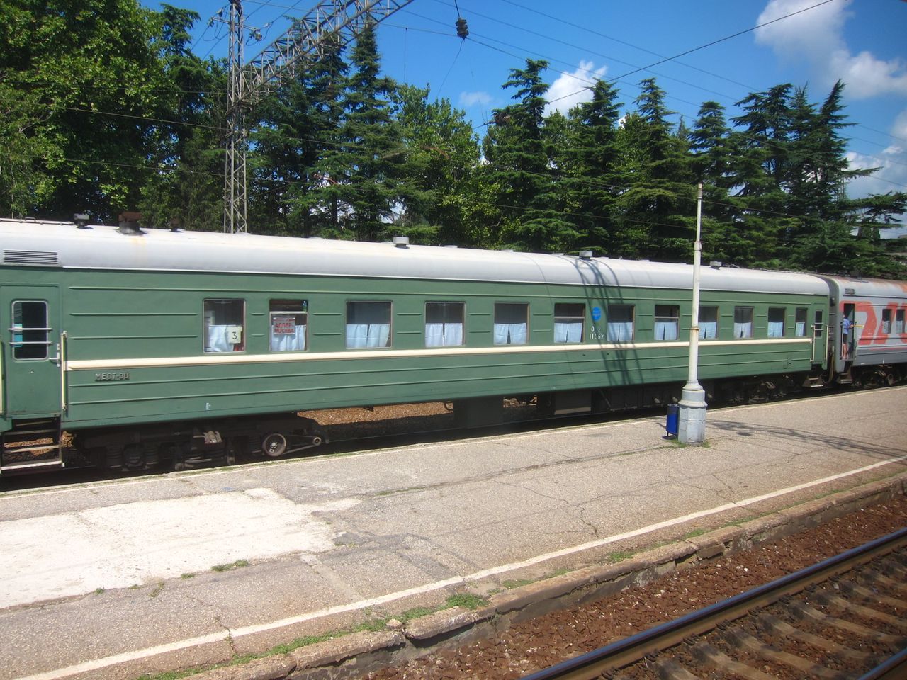 В прошлом году в августе ехали на этом поезде в Сочи. Вагон СВ, шоколадный Аммендорф, не меньше, чем 20-ти летний давности, но при этом совершенно новехонький и полностью оригинальный, все предусмотренные опции, и прежде всего кондиционер, работали как штурманский хронометр. Весь фокус был в том, что этот вагон был из ВЧ-4 (вагонный участок центрального назначения для обслуживания руководства) и в составы для обычных пассажиров его включают исключительно редко, лишь тогда когда требуется срочная замена вагона, а так этот вагон практически круглый год стоит в депо, причем проводники в нем находятся постоянно - отсюда чистота и комфорт. Так что, нам можно сказать повезло. Вообще-то поезд идет очень долго, с так называемыми тех.остановками, то есть по-видимому пропускает фирменные поезда, так между Горячим Ключем и Сочи, тех.остановки по времени составили не менее 2-х часов. Стояли в Долине Очарования, Чинарах, Чилипси, после Туапсе долго стояли в Водопадном. Но, в прошлом году 412 приходил в Сочи вечером, что нас очень устраивало, и потому не оставило негативных впечатлений от безусловных неудобств, ввиду долгого путешествия, да и комфрт, к счастью не подкачал.maks496:Вагон СВ как я уже говорил раньше- это Аммендорф щоколадка. с кондюшником и био туалетом. по крайней мере я на таком еду проводником. через 2 часа уже отправление, в остальных составах тоже вроде бы были немцы... купешки разные есть и ТВЗ есть и немцы... какой с био туалетом угадать сложно. плацкарт разношерстный и КВЗ и Днепры все естьsancho:о! тут вроде проводник с Николаевки был, может он нас просветит про св