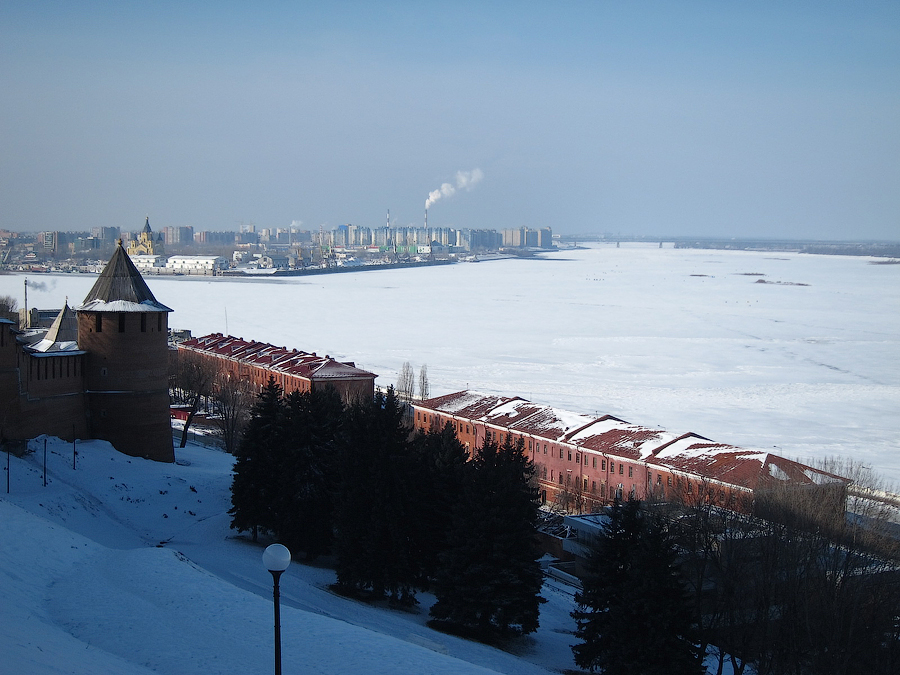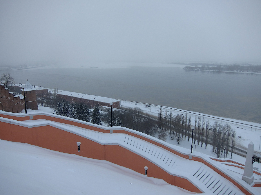 Вид на заречную часть Нижнего и Оку с территории парка "Швейцария", 31 января 2014 года