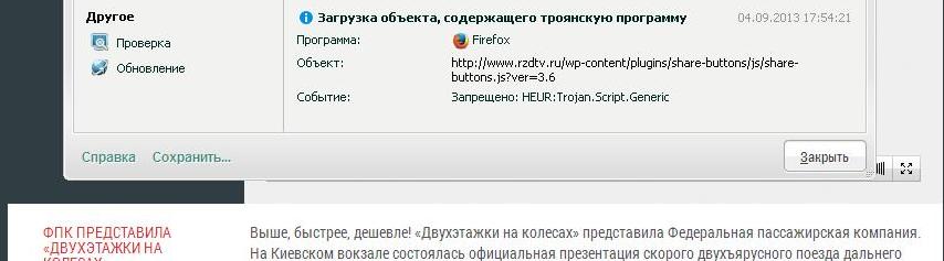 Это как понимать? Уровень АйТишников в РЖД такой, что их сайт заражен вирусами:Антон Ефимов:Видеорепортаж РЖД-ТВ "ФПК представила «двухэтажки на колесах»":