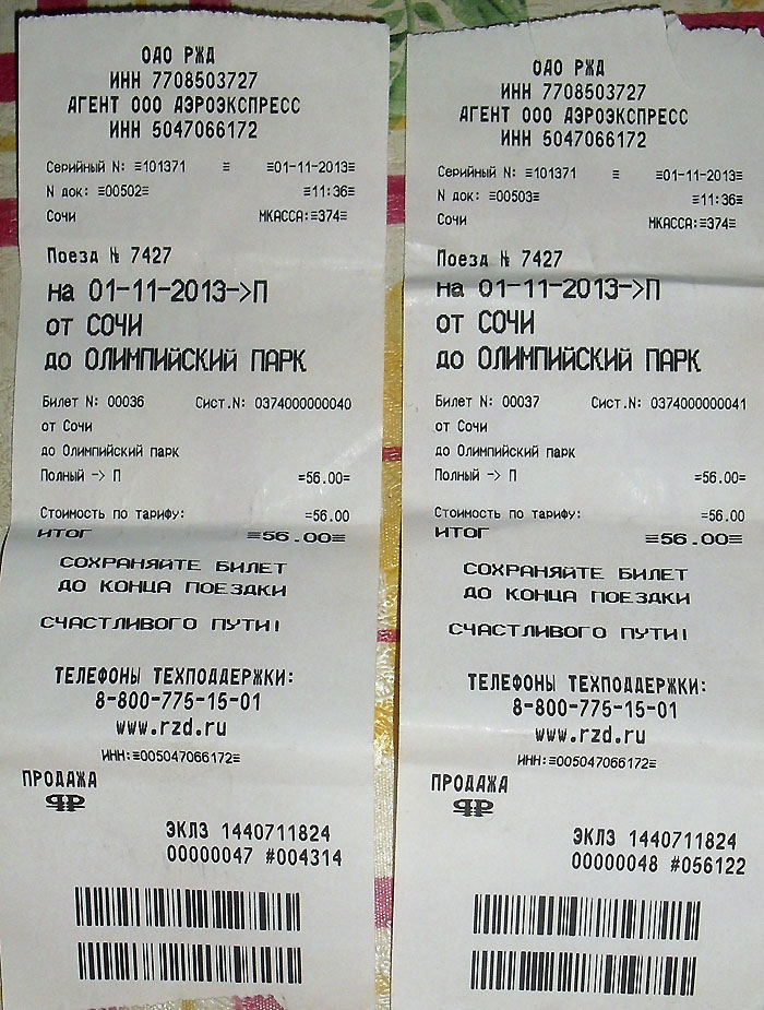 Итак: маршрут Сочи - Красная поляна обслуживается электропоездами серии ЭС-1 "Ласточка". В пяти вагонном варианте. Маршрут Сочи - Олимпийский парк обслуживается вперемешку поездами "Ласточка" и ЭД4м (приписки ТЧ-29), в шести вагонном варианте. Судя по всему перевозчиком на маршруте является само ОАО РЖД, хотя на билетах указано "агент ОАО Аэроэкспресс". Стоимость проезда зонная. В зависимости от расстояния. Одна зона стоит 14 рублей. Так например: стоимость проезда Сочи - Олимпийский парк стоит 56 рублей, Сочи - Красная поляна 112 рублей, Адлер - красная поляна 70 рублей и т.д. Маршрут обслуживает следующая бригада: Машинист и помощник машиниста. В салоне: 2 разъездных билетных кассира, охранник и уборщик. Женщина которая занимается уборкой салона. за время движения она 2 раза прошла и сделала лёгкую уборку в салоне. В основном это, если кто то зашёл в грязной обуви или какой то мусор упал на пол. Это, конечно, видеть крайне необычно, особенно в сравнении с нашими обыденными электричками.