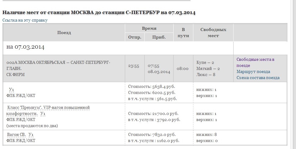 Я наблюдал пару дней назад. Не ушли.serg:Опрометчивый вывод. При тотальном дефиците мест, на этот поезд места могут быть выкуплены "теми, кому положено", либо "пойманы кассирами" в момент снятия брони. А при наличии некоторого спроса, эти места уходят в первую очередь, а те которые были свободными до снятия брони остаются нераскупленными - проверено на практике...