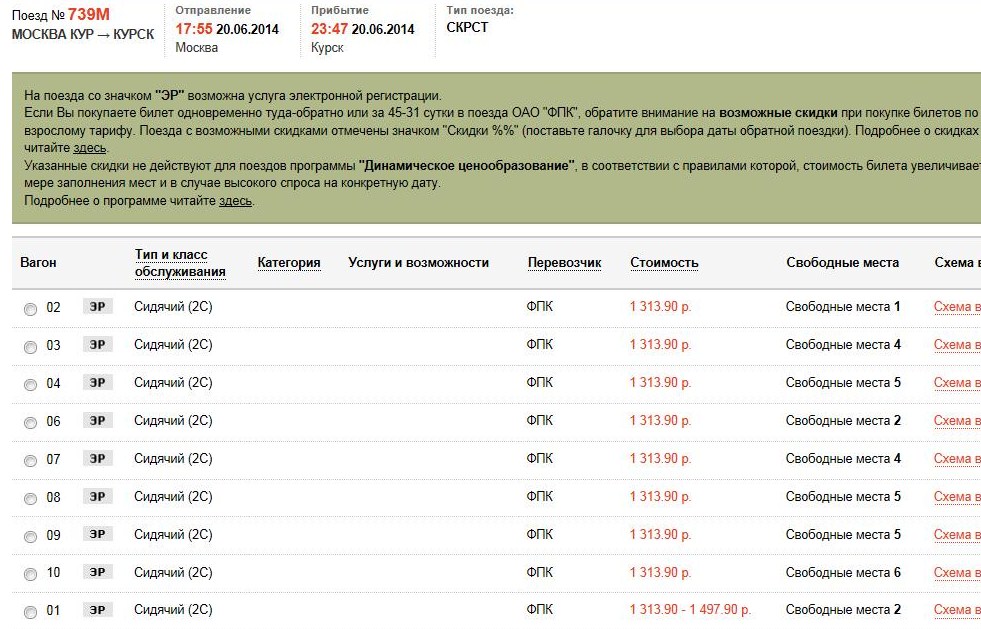 Ласточка в динаме и 603 это откидушки за 45 суток. А 004 во второй класс все же 800. 1200 это в первый класс, в котором 3 места в ряду (недавно стоили одинаково, но впарили услуги)Vladimir M: Ну вообще-то Ласточка от 603, а сидячка в 004 1264!
