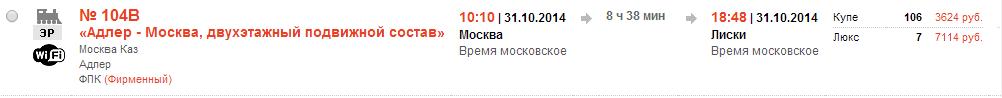 DA2008:Двухэтажка от Москвы (отпр. 31.10.2014) до Воронежа не продано 168 мест, а далее смели, всё, что можно смести с прибытием 01.11.2014 в Адлер.
