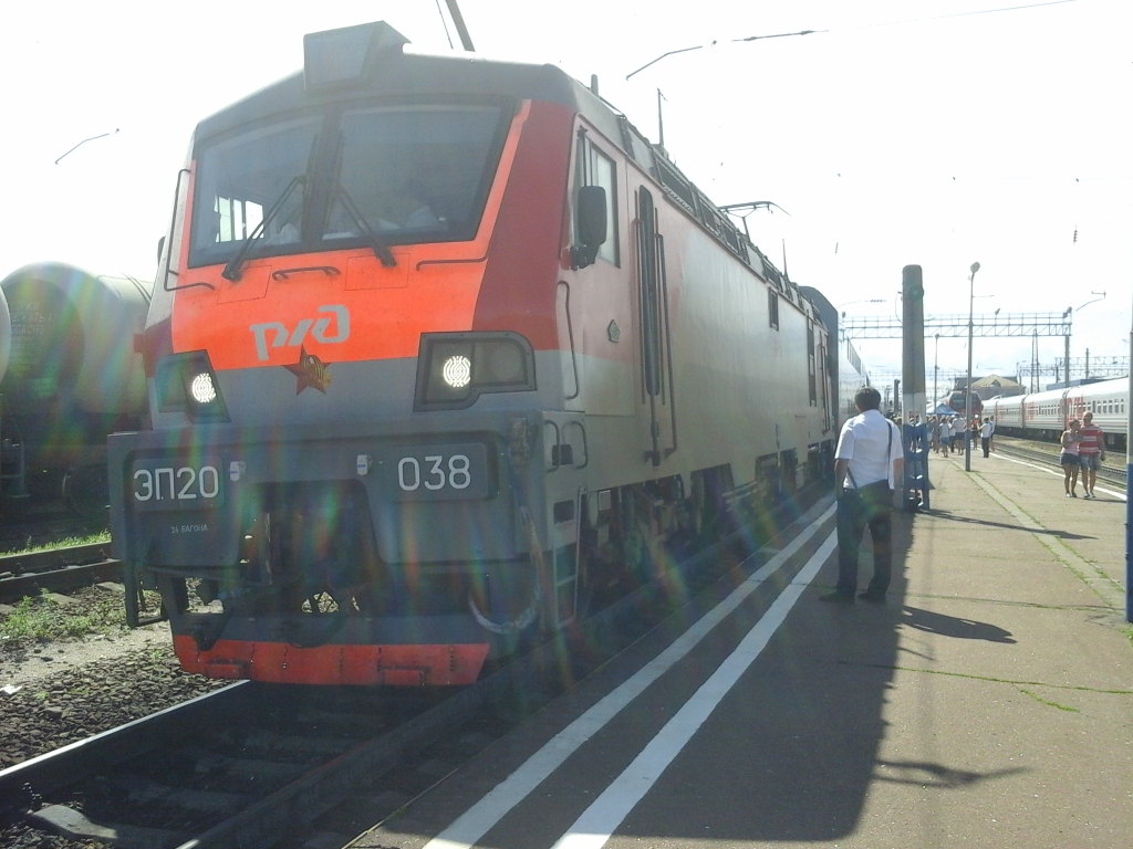Вибрация и тряска вагона весьма заметна, опять же по сравнению с обычным аммендорфом. Габаритов полок для нашей компании хватало) "Диванчик", однако, жестковат. Подергивания состава присутствовали, локомотив на фото в лучах Лискинского солнца во время смены бригады: