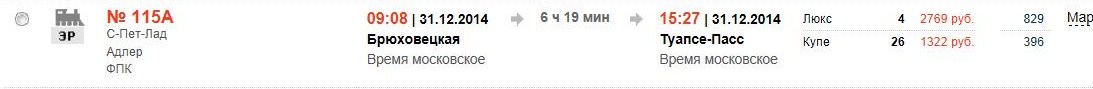 Нет, я конечно понимаю, что РЖД не отличается умом и сообразительностью, но почему в 115 поезде на 31 декабря от Краснодара до Туапсе купе стоит 9124 (!) а ЛЮКС 2636. Гробовозка почти в 2 раза дешевле. Глюк или тупость?