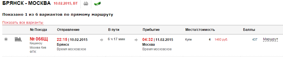 Другое дело, что продажа от Брянска до Москвы на него "зарегулирована", и места появляются в продаже не ранее 3 суток до отправления.