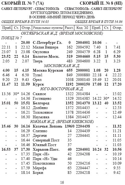 Данная тема предназначена для отзывов, фотографий, схем составов и расписаний поезда. Убедительная просьба вести обсуждение поезда, задавать интересующие вопросы в специальной теме форума "Обсуждение и вопросы по поездам": Обсуждение поезда 007А/008П Санкт-Петербург - Севастополь