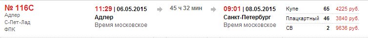 Вот свободные места Адлер-СПб на 06.05 на 116-й