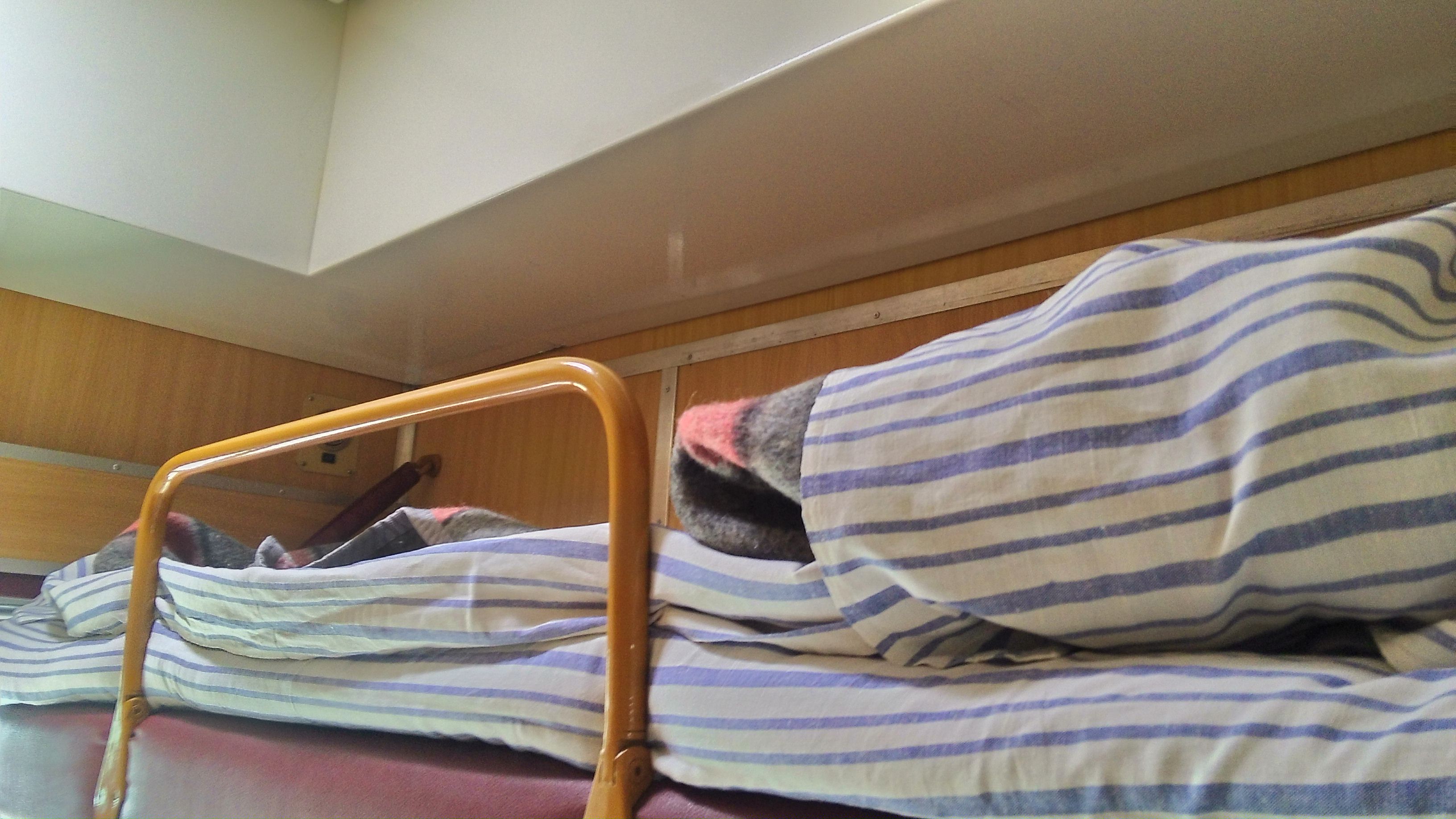 Внутри вагона чисто, тепло, однако свет еле-еле, почти никакого. Почти вслепую распихивали рюкзаки по третьим полкам, стараясь не разбудить спящих пассажиров.