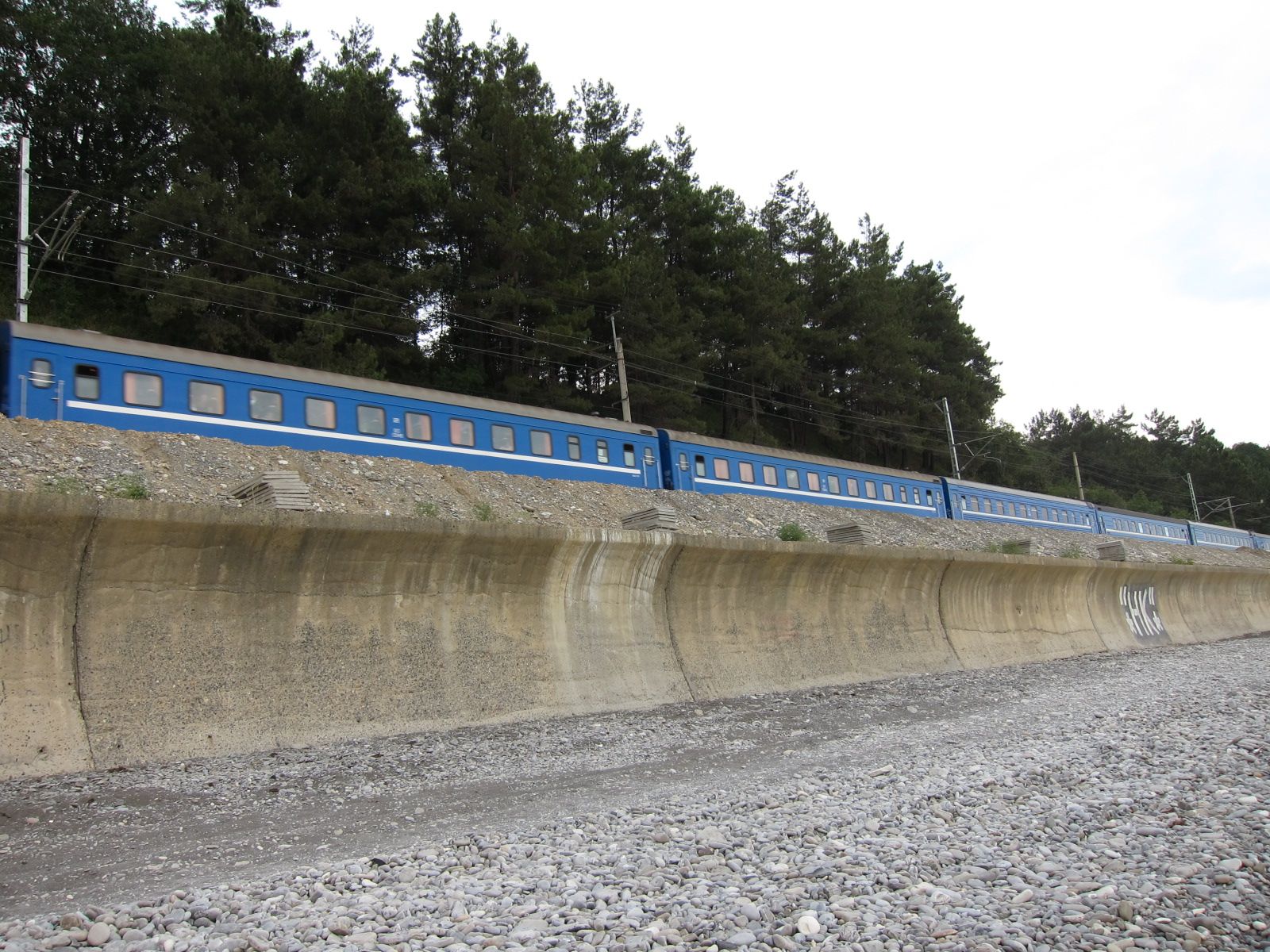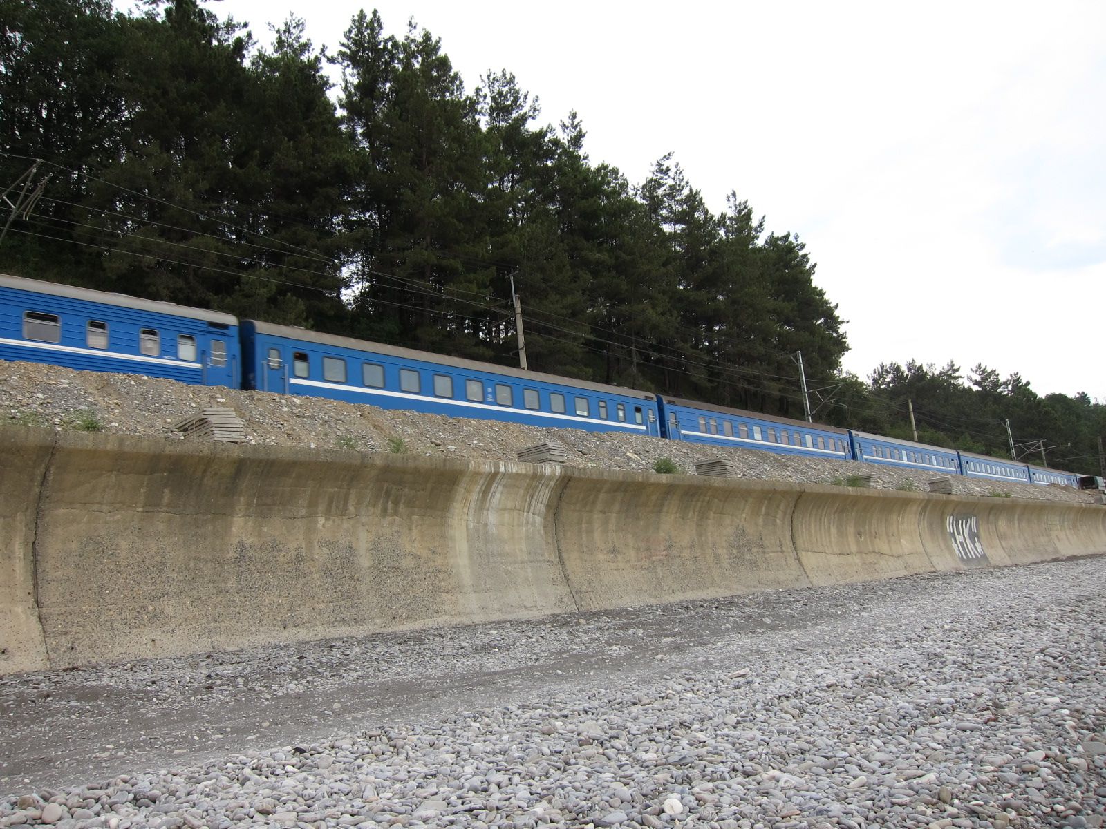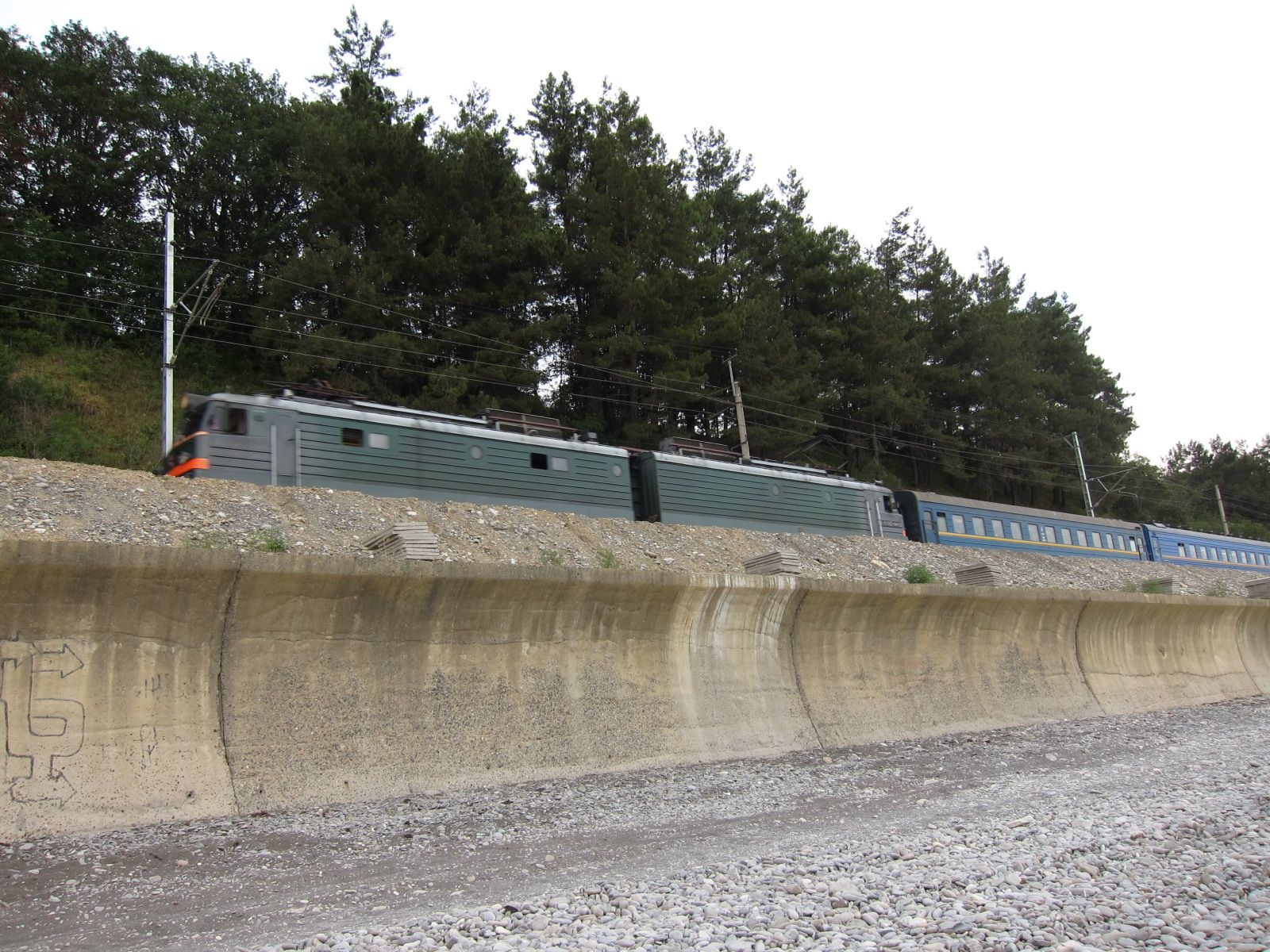 По контингенту пассажиров особо сказать нечего - во время ннашей посадки уже все спали, а на участке Туапсе - Адлер постепенно высаживались. Создалось впечатление, что по прибрежному участку поезд шел очень медленно, будто бы специально давая возможность полюбоваться штормящим морем (в то утро лил беспрерывный дождь, а на море был шторм). Тем не менее, в Адлер прибыли по графику.