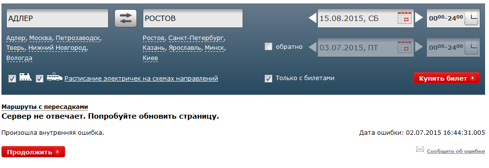 Вот прямо сейчас колесо крутится и крутится - пытаюсь посмотреть список поездов от Адлера до Ростова на 15-е августа. И вот что мне выдало