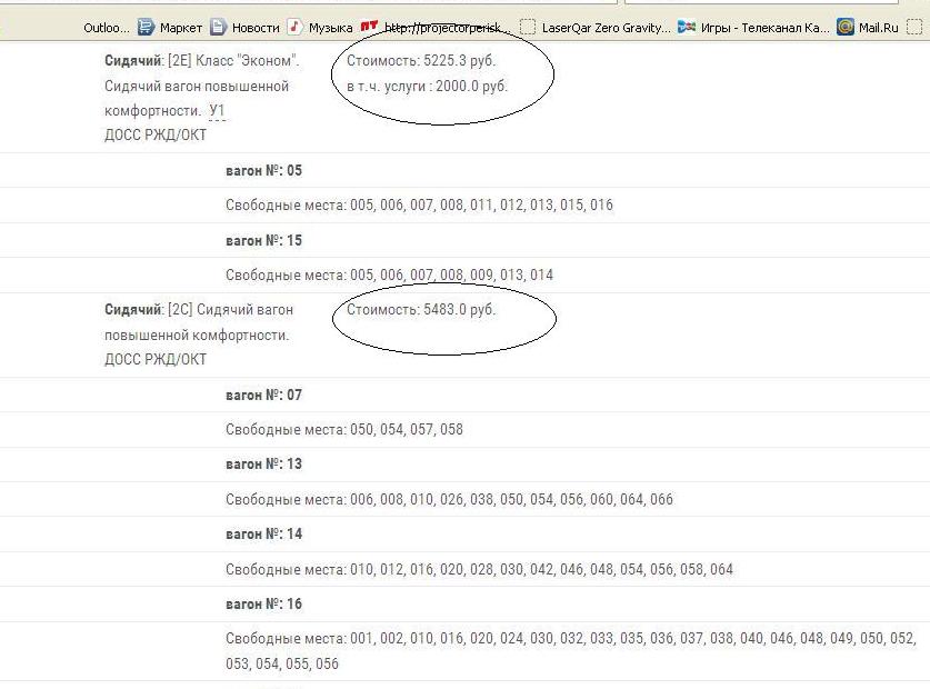 serg, совершенно напрасно Вы мне не верите. Посмотрите сами по сайту РЖД, 8 мест в вагон-бистро на поезд отправлением из Питера в 13.55 и 16 мест (8+8) на поезд в 14.05 появляются на сайте где-то в 17-18 часов накануне. И указанная цена на них - 2645 руб. Что, разумеется, не соответствует действительности.