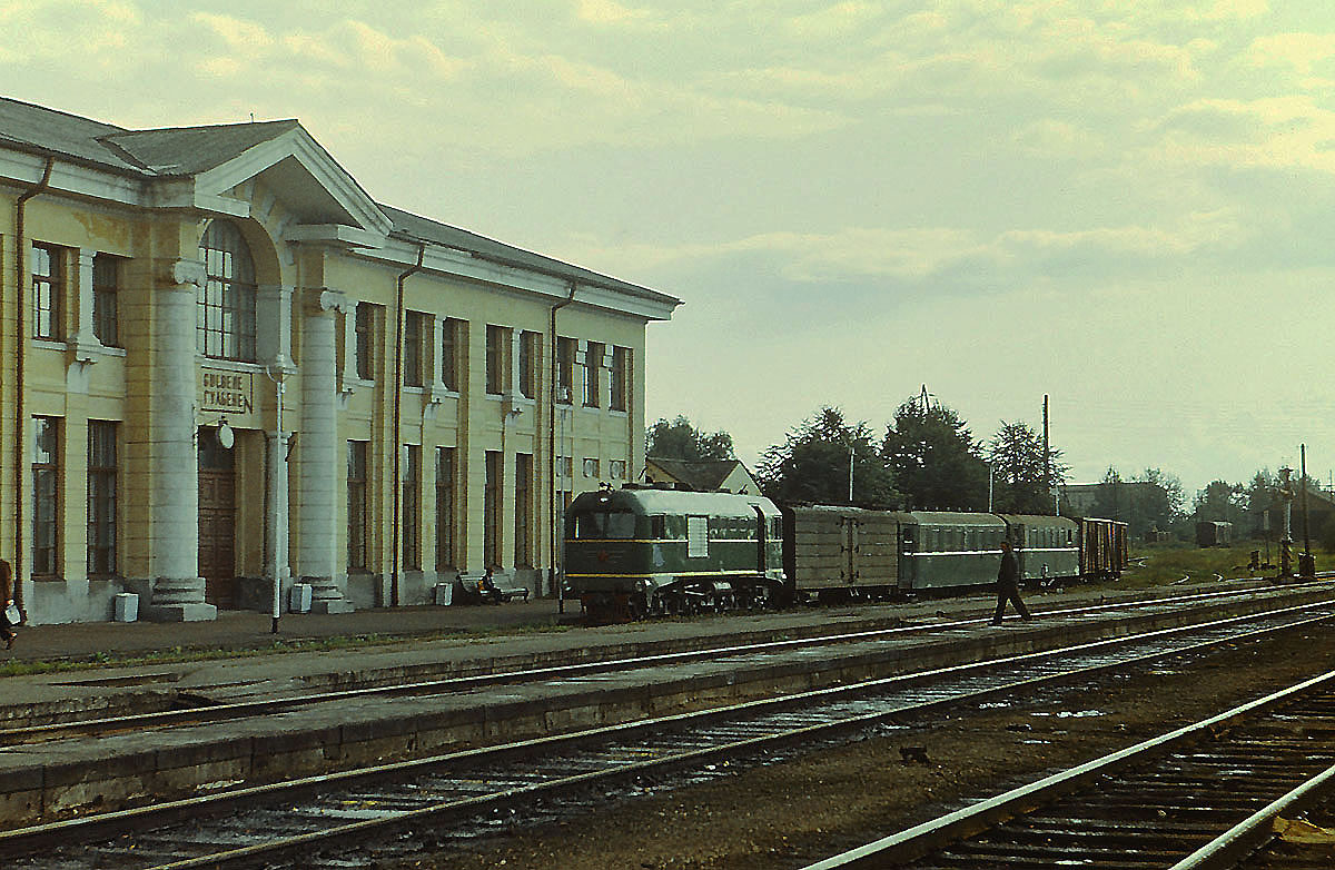 Тепловоз ТУ2-052 с пассажирским поездом на станции Йонишкелис, Литовская ССР (19.09.1980):