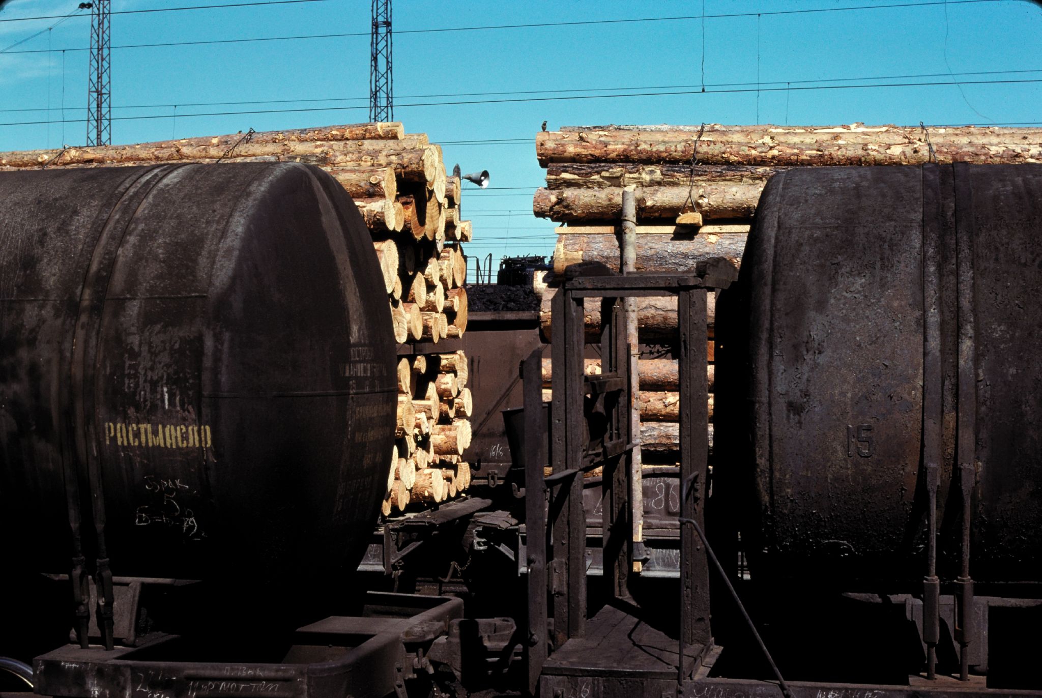 Автор фото: Gustav NeuenschwanderMariinsk - Oel, Holz, Kohle wagons (1979).