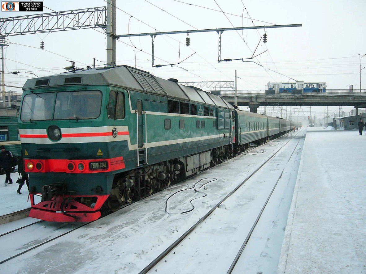 Автор фото: DiesellokophrenСпасибо за оценку! Что за поезд, к сожалению уже не вспомню... Судя по сине-зеленой окраске вагонов поезд узбекский: Ташкент или Самарканд...