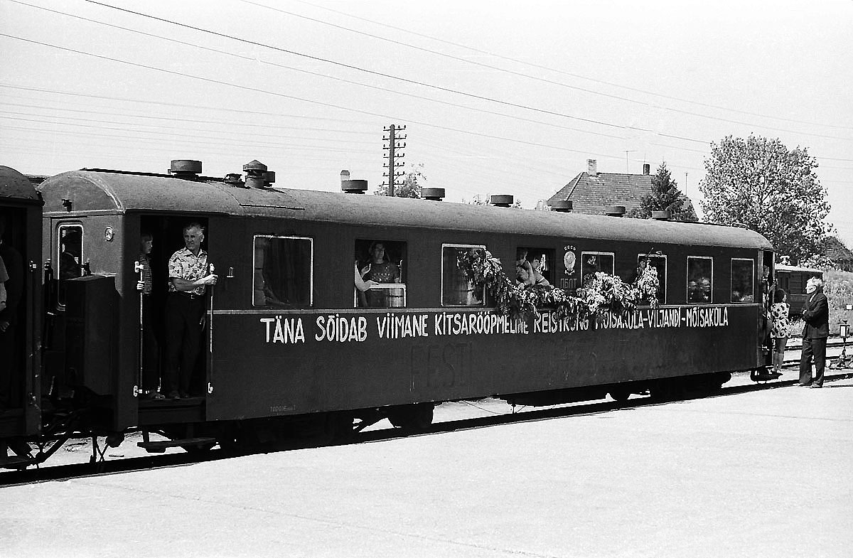Последний узкоколейный поезд сообщением Вильянди - Мыйзакюла на станции Вильянди, Эстонская ССР (03.06.1973):