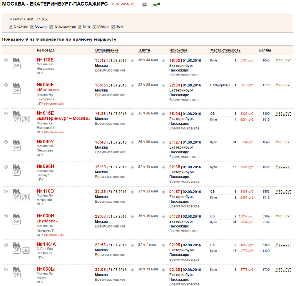 А насчёт ниток... Давайте попробуем уехать, например, завтра в Екатеринбург. На первый взгляд, билеты есть. Но если изучить подробнее — в общем-то, всё заполнено битком, остались только верхние полки и в неудобных местах. Кроме того, из девяти поездов четыре или пять можно вычёркивать, потому что прибывают они в неурочное время. Возможности приехать утром или вечером нет. То есть, поезда вроде есть, а ехать не на чем.