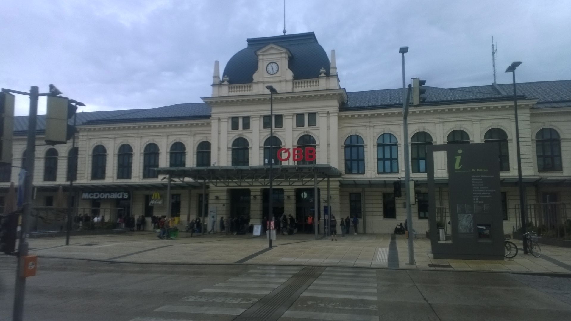 Основная станция города Санкт-Пёльтен (St. Pölten). Состоит из старого здания вокзала и 4 пассажирских платформ. Есть высокие платформы, есть средние.