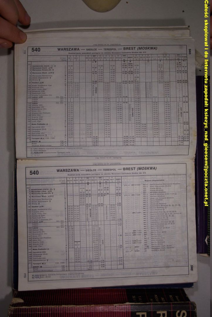 Tab. 540: Warszawa – Siedlce – Terespol – Brest (Moskwa) (RJP: Polska 1991-1992).