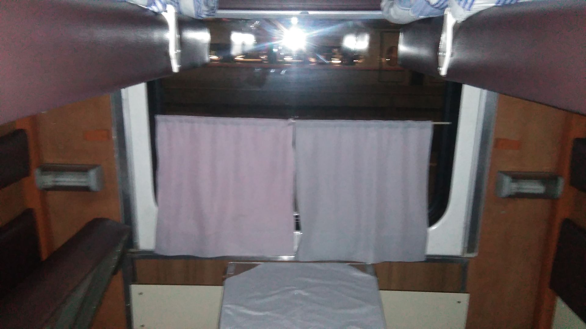 4) Чистота вагона - чисто, видно, что проводники прибираются. Разве что от предыдущих пассажиров на местах в моем отсеке остались скрученные матрасы с бывшим в употреблении бельем.
