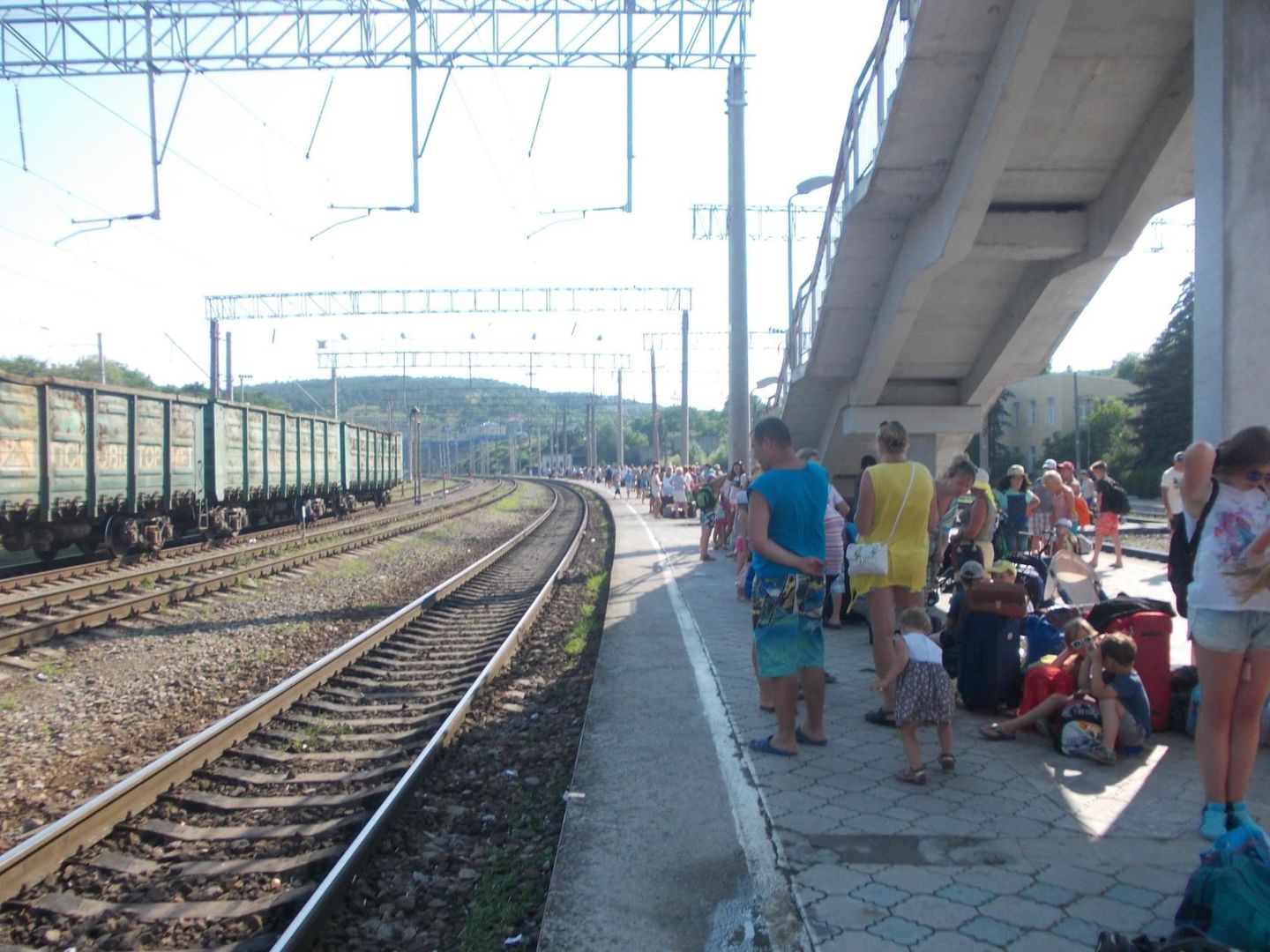 фото 5 июля 2016 с Тоннельной...пассажиры ждут Новороссийск - Пермь. На Тоннельной выходят и садятся те, кто отдыхает в Анапе, ее районах и на Тамани... немало я считаю