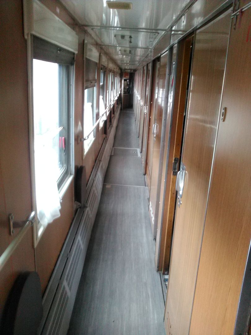 Мой 16-й вагон снова аммендорф! :*THUMBS UP*: Постарше того, что "туда" (гофры между окнами были). Внутри всё то же самое - кондиционер, стеклопакеты, обычный туалет, шторки, ковры в купе, поролоновые матрасы.