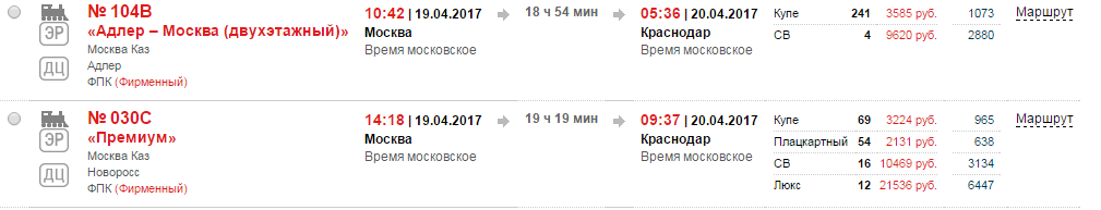 Надо попасть в Краснодар 19.04, время есть поеду поездом, а нет, АФЛ все билеты по 3000 отдает, я конечно люблю поезда, но разум берет вверх ::-[: