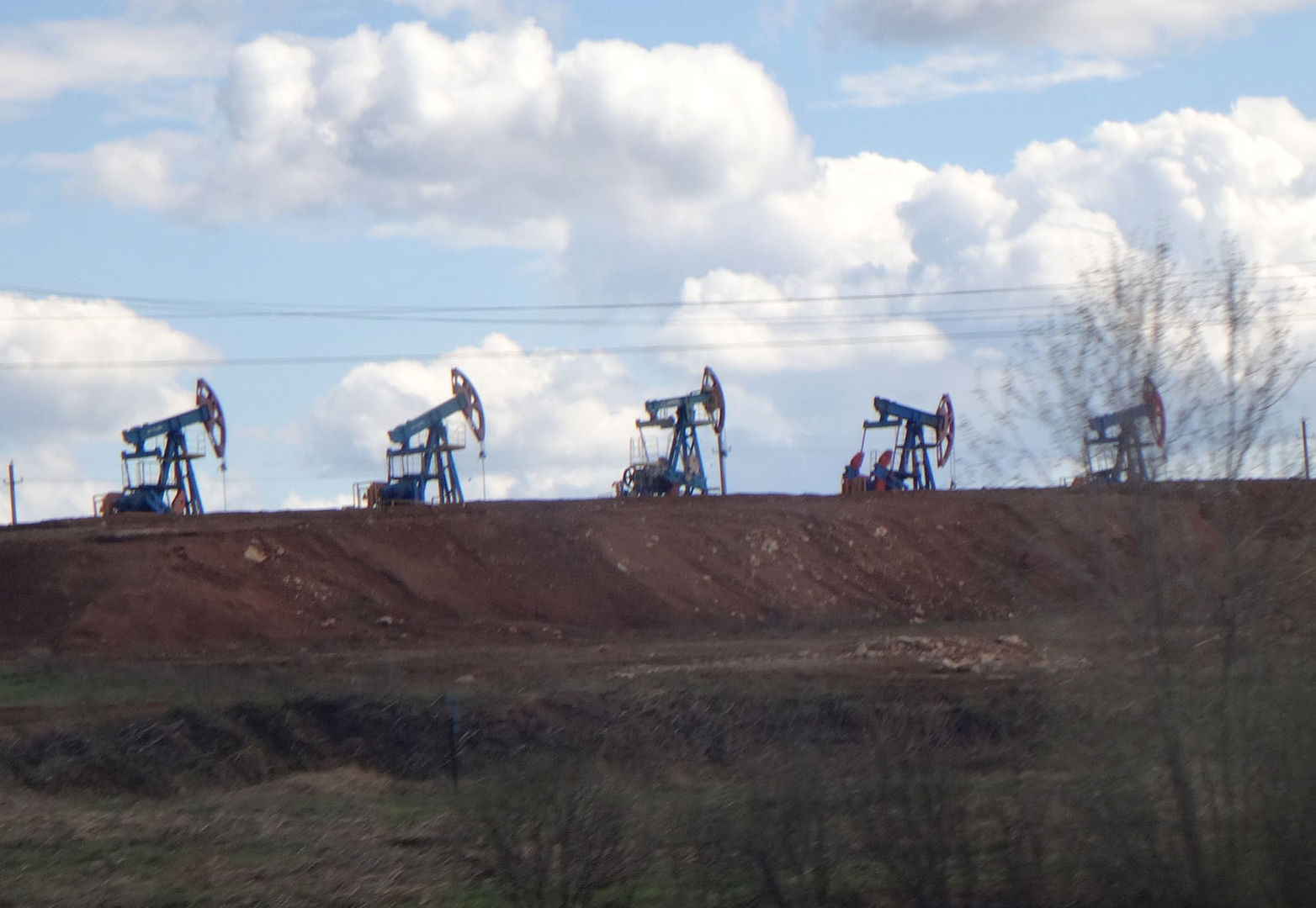 Вот, кое-какие заснял в недавней поездке на 15 поезде:Дизелист:Работающие нефтяные качалки и факелы рядом с ними попадаются