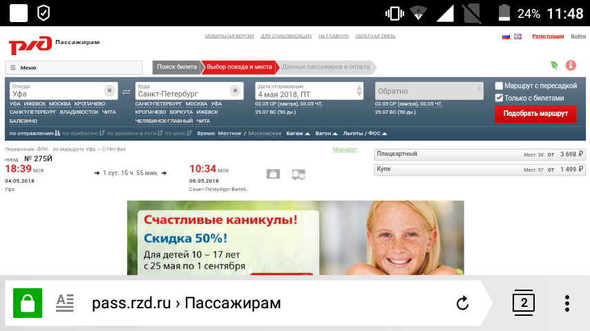 Железнодорожный » 01-05-2018, 12:57:Ну вот опять приведу в пример часто используемое мной уфимское направление.