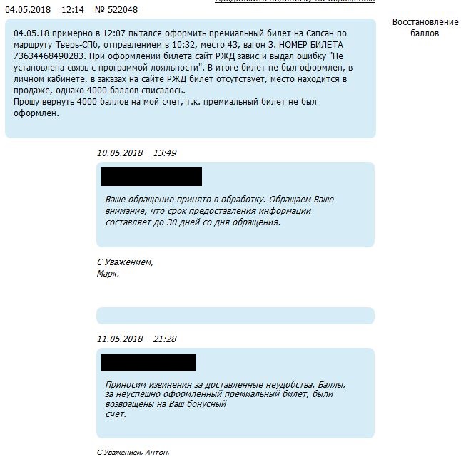Значит, "глюки" у РЖД Бонуса, к сожалению, есть. Но ведь баллы Вам вернули ! Я, когда пользовался другой бонусной программой, столкнулся с тем, что рядовые менеджеры по продажам турфирмы не всегда хорошо знали её условия, пытались убедить меня в том, что баллы можно потратить только на покупку путёвок в организуемые турфирмой групповые туры, а на билеты их тратить нельзя, хотя я уже не однократно покупал билеты за баллы. Просил соединить меня с финансовым директором, после разговора с ней вопрос решался в мою сторону. Радости от участия в бонусной программе перепалки с менеджерами по продажам тоже не добавляли.