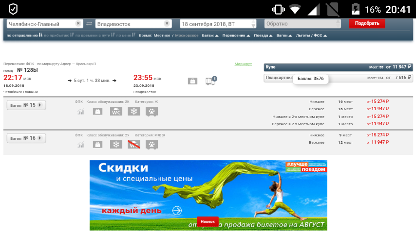 контингент в 100 попроще. Я его тоже зафоткала в апреле. Может позже пост выпущу. Но, там было минут 10-15 на фото, надо еще фотографировать , чтоб посмотреть.Колхозник » 21-06-2018, 19:23:Нина, не знаю, насколько вам важно мое мнение. Однако все равно его выскажу. Мечта на то и мечта, чтобы не просто сбыться, а сделать это еще и красиво. Забудьте про 100-й скотовоз. Извернитесь, но купите билет до Владика на "Россию". Там и контингент поприличнее, и ехать будет комфортнее. Просто поверьте человеку, который тоже немало проехал: и на собаках, и в общаках, и на плацкартах, и в купе, и даже в св. Каждый опыт получен в свое время. Если же поездку будете делить, то 100 подойдет. Если поедете по всему маршруту из ЕКБ, то только единичкаlopik: поеду на 100. Но, может будет акция у ФПК , как в том году