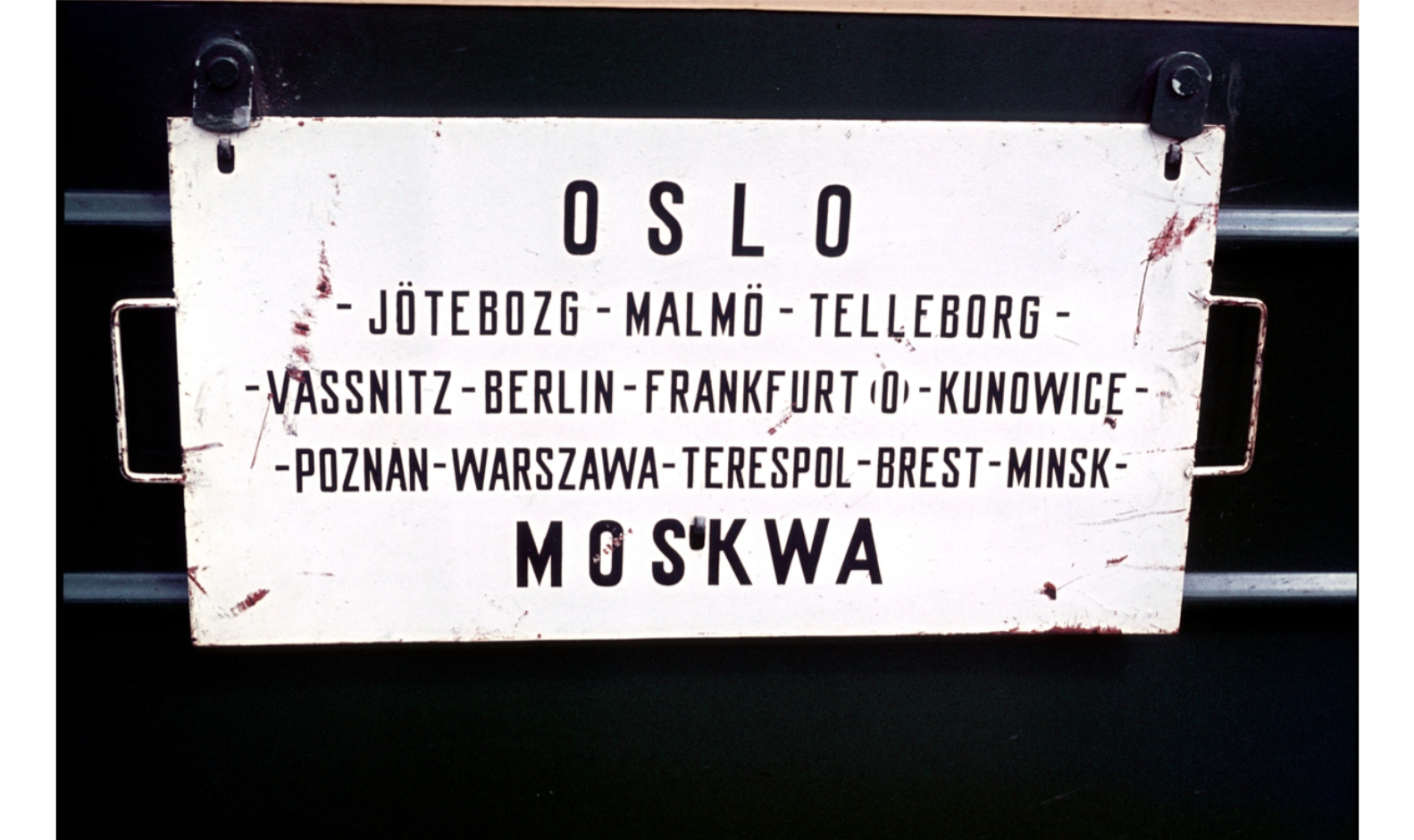 https://digitaltmuseum.no/021015585441/ ... o-o-moskvaDestinasjonsskilt på sovevogn Oslo Ø - Moskva. Oslo Østbanestasjon (с) Borgersen, Erik 1973.