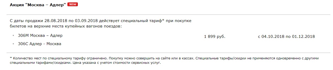 Акция не распространяется на покупку билетов в поезда "Сапсан".