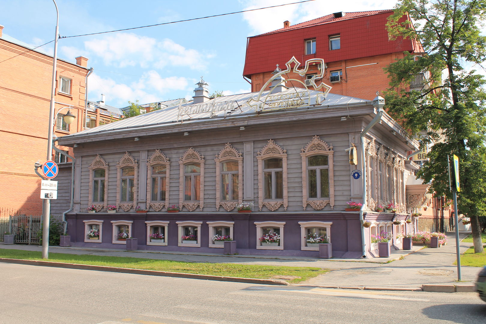Дом Поповой. Деревянное двухэтажное здание. Редкий для Тюмени тип здания с преобладанием пропильной резьбы в декоре фасадов