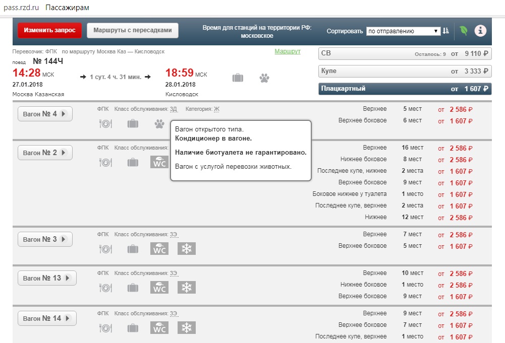 — Цена. Стоимость поездки в плацкартном вагоне дешевле чем в сидячем на поездах 738Ж/737Ж/740Ж/739Ж.