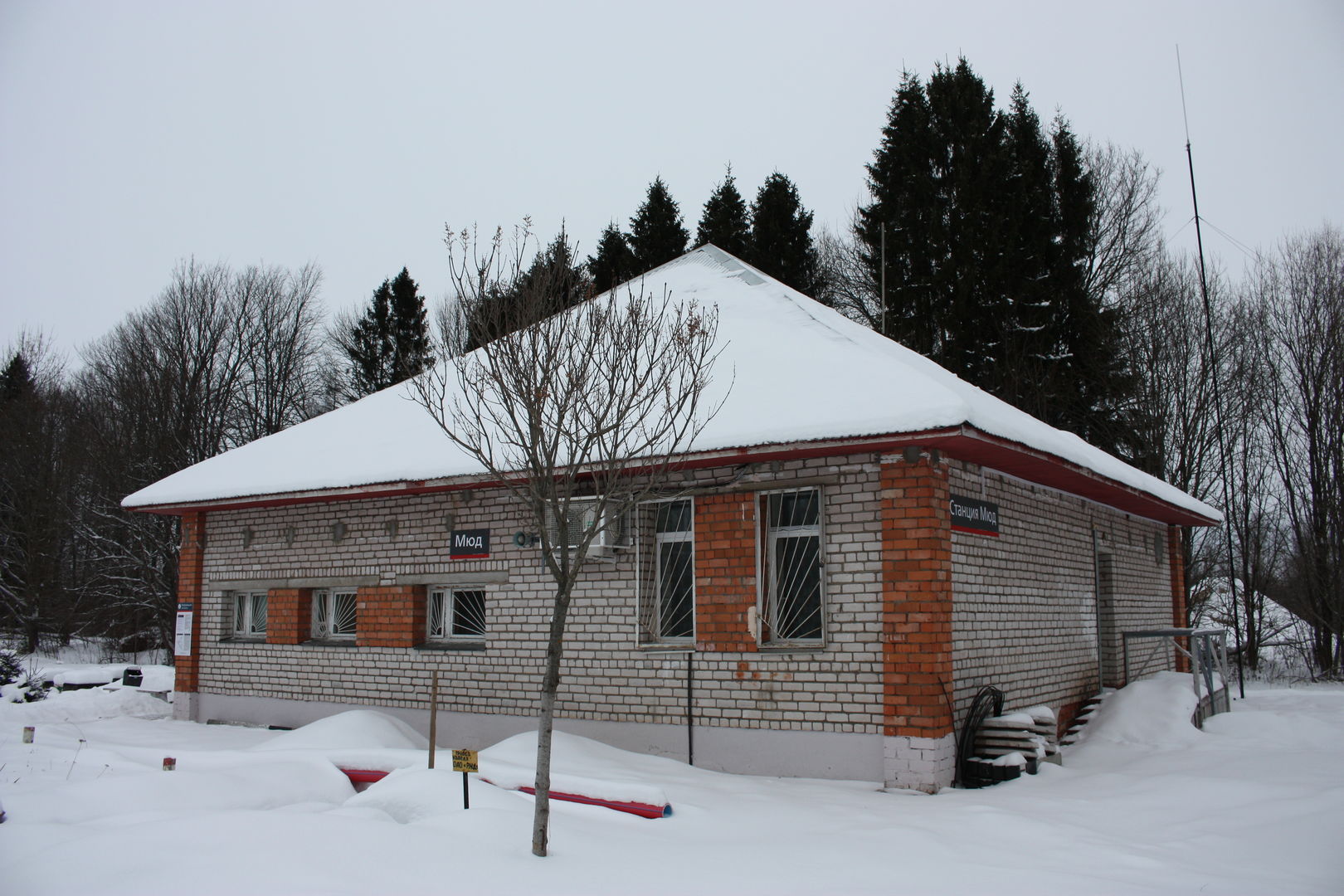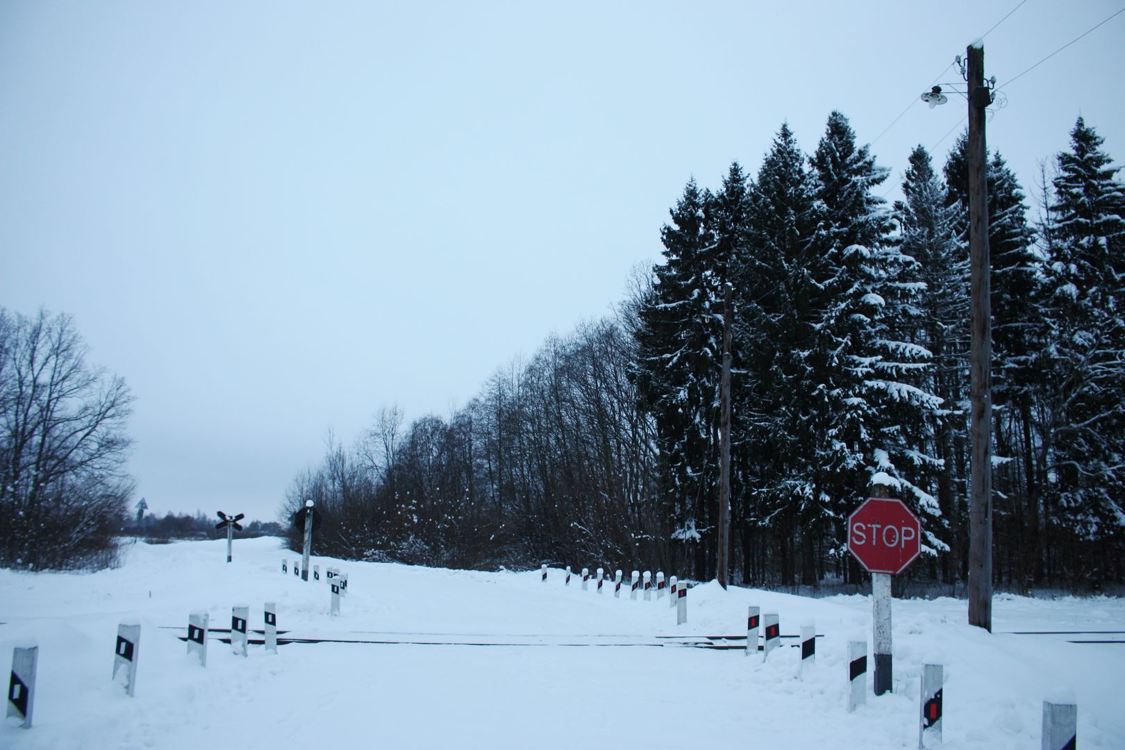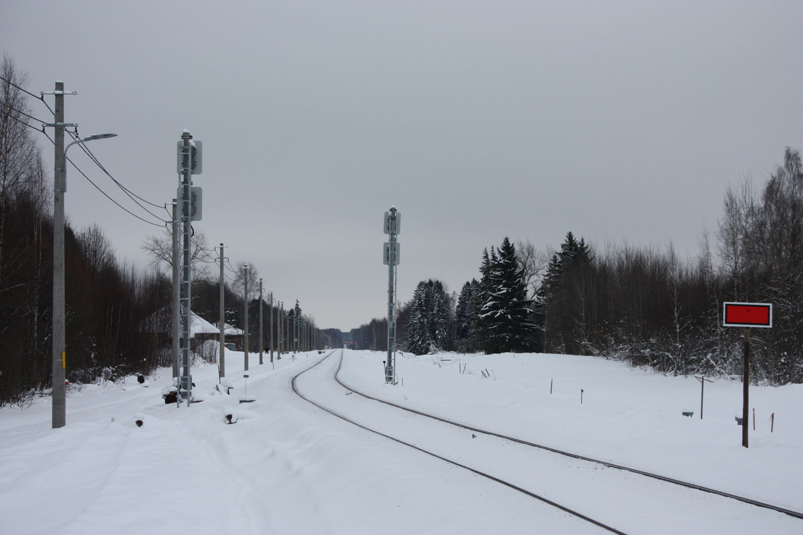 Зная и читая про возрождение Савелки в последний день новогодних праздников решили с приятелем доехать до реконструируемого разъезда МЮД. Посмотреть и пофотографировать почти законченную работу и если повезет грузовой состав. Но не все так просто. Не могу сказать, что на будущем разъезде конь не валялся, но работы предстоит еще много. Боковой путь уложен, подключен и эксплуатируется, а главный полностью разобран, местами снят до основания грунт. Так как работа на праздниках не велась и снега выпало много, было непонятно - насыпь на стадии снятия или засыпки - местами под снегом котлованы, местами насыпь. Около переезда Турынино - Большое Воробьево горы грунта. Столбы, светофоры, освещение установлены новые. Очень приятно глазу. Питание к чему то подведено, к чему то нет - на половине столбов проводов нет. Под трансформатор стоят столбы-пасынки. Шкаф подогрева стрелочного перевода новехонький и еще в стретч-пленке. Мини-платформа по виду сделана на скорую руку и достаточно просто. Техника стоит на площадке в ожидании будних дней. Старые светофоры со столбами лежат на земле вдоль путей. Так как время было ограничено, до Савеловской горловины станции не дошли. Издалека было видно, что освещение на ней еще не установлено. Всего провели на станции чуть менее часа (и то это время с дорогой от и до машины, которую оставили около переезда). Увы ни один состав за это время не прошел. Я даже более скажу - все светофоры со всех сторон горели красным. Около станции видели свежие следы лосей. Видимо тоже контролируют процесс реконструкции. Немного фотографий (как я понимаю на форуме есть ограничения по их количеству).