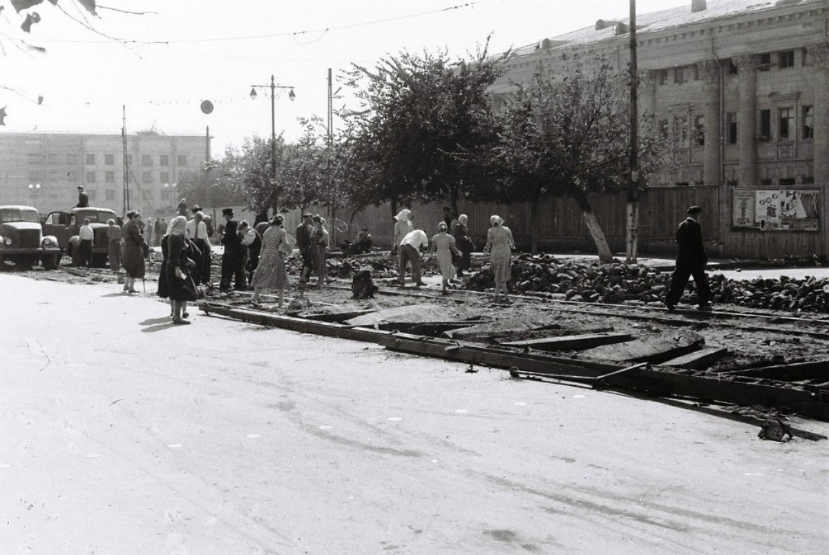 Демонтаж трамвайных путей город Воронеж, улица Плехановская около 1960 года