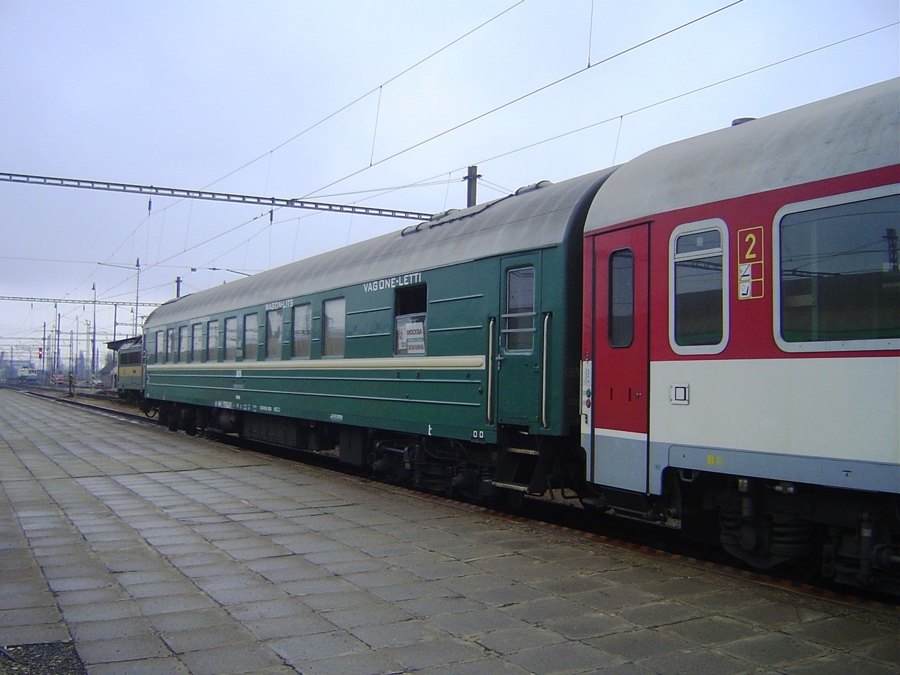 Спальный вагон RZD сообщением Москва - Жилина на станции Кошице, Словакия (10.04.2008):