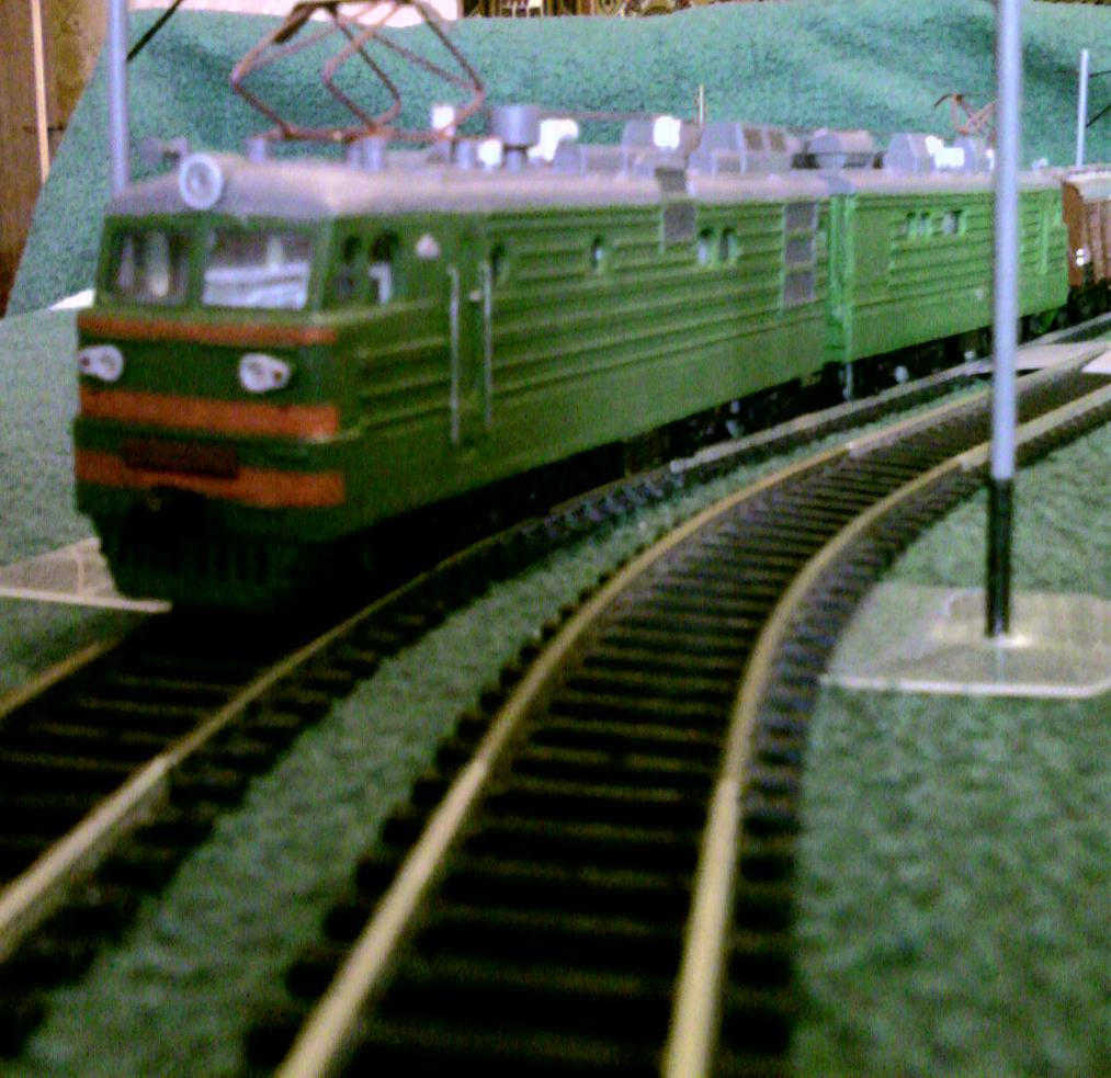 Мы собрались идти к месту стоянки, но нас не отпускает всё ещё закрытый переезд. И не напрасно. Вдали показался грузовой состав. Он медленно приближается к нам, чуть притормаживая, и ведомый "круглофарым" электровозом ВЛ80к. Понаблюдав за ним, мы наконец-то возвращаемся.