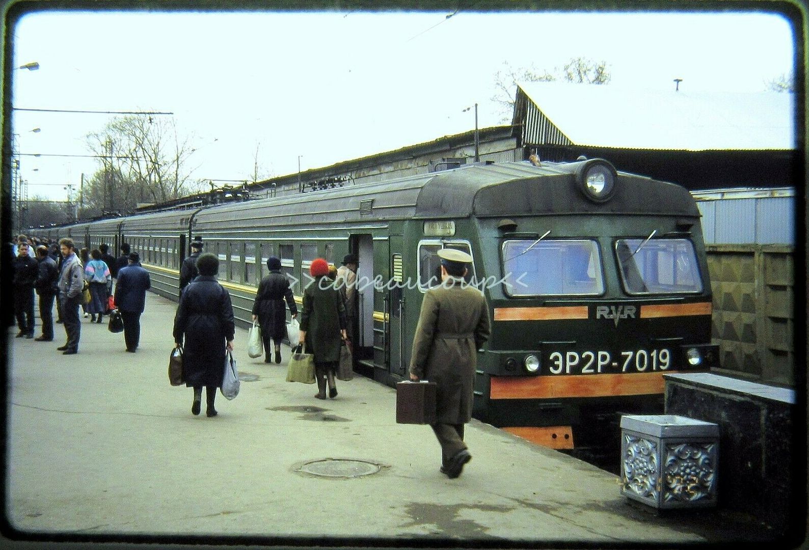 Railroad slide Russia ЭР2Р-7019 EMU train Moscow 1992.
